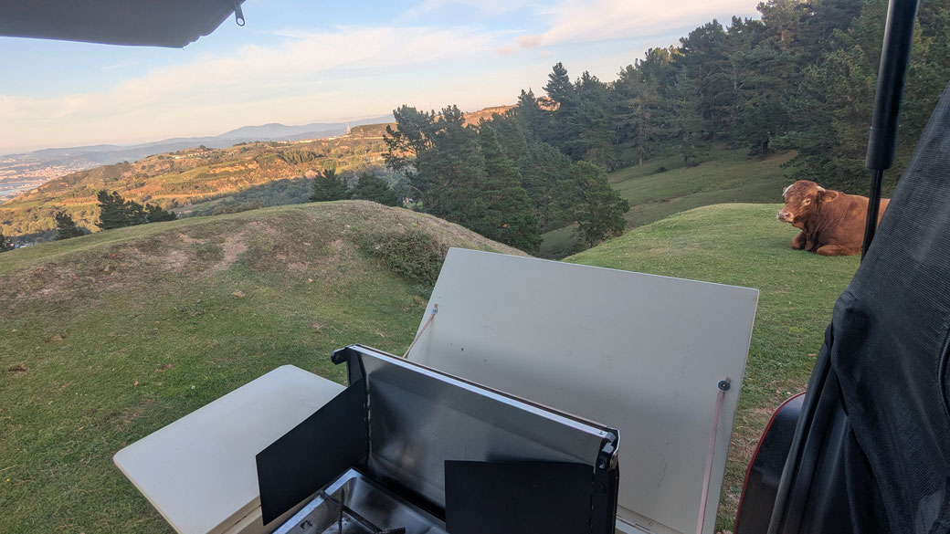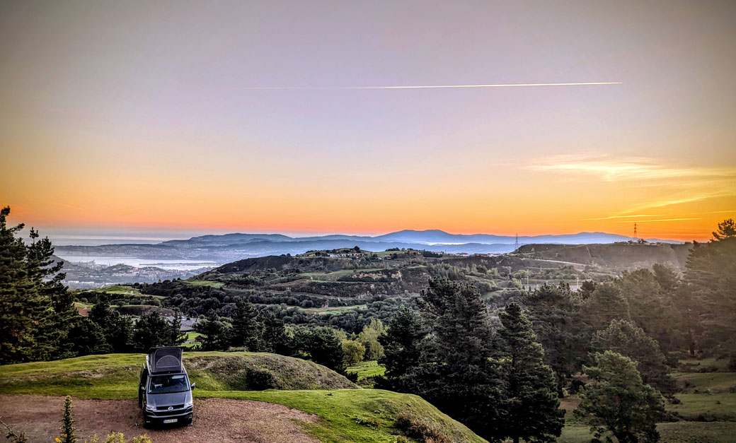 Nächstes Ziel Bilbao. Stellplatz ist schnell gefunden. Dachte ich. Große Wiese mit Blick über die Stadt. Stand da.
