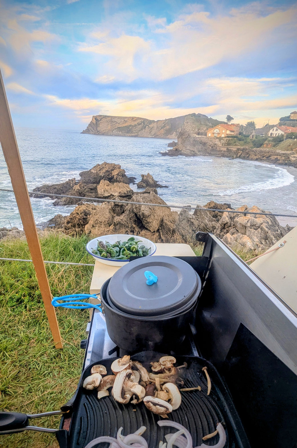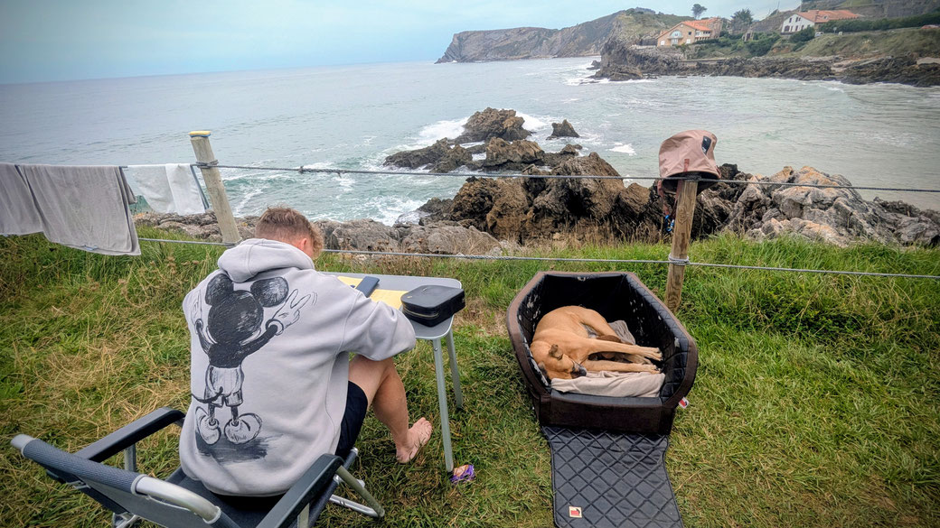 Da sind wir in Nordspanien. Im Sommerurlaub. Mit Winterhoodie und Mütze. 🙄