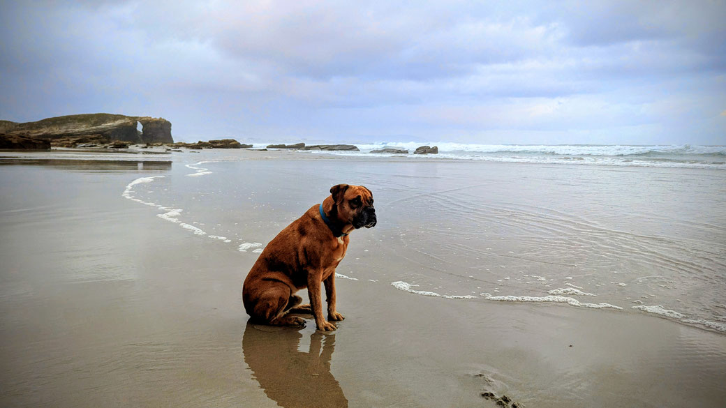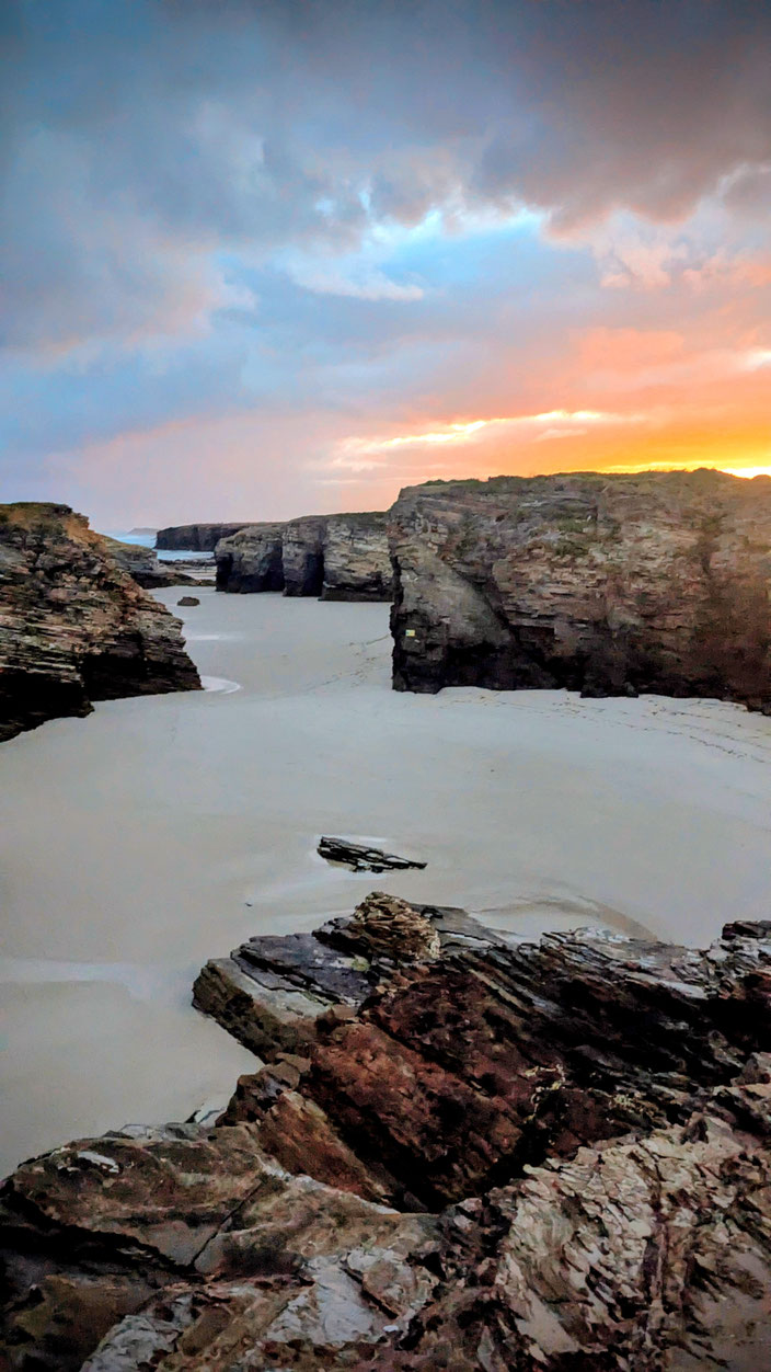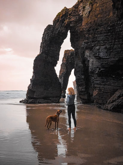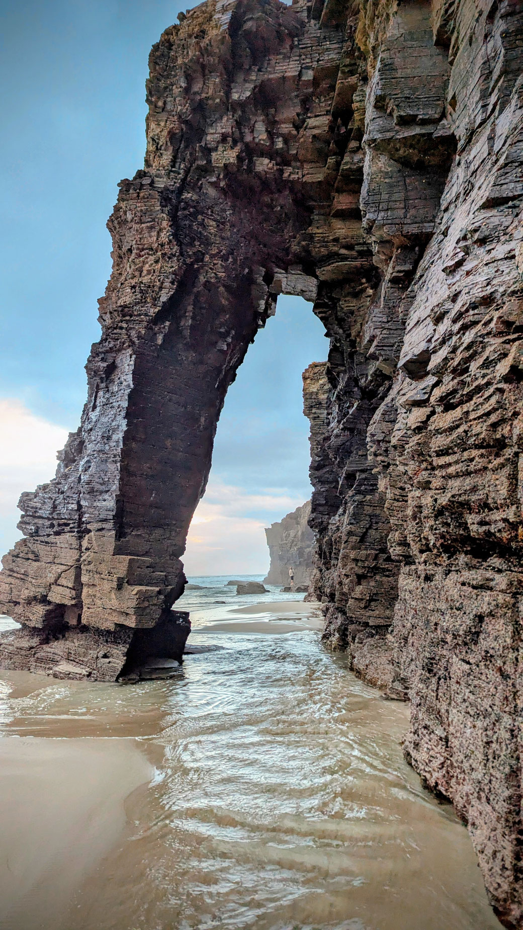Die gefundene Alternative: Playa de las Catedrales. Ein schöner Strand mit Felsentoren. Bei Ebbe begehbar.