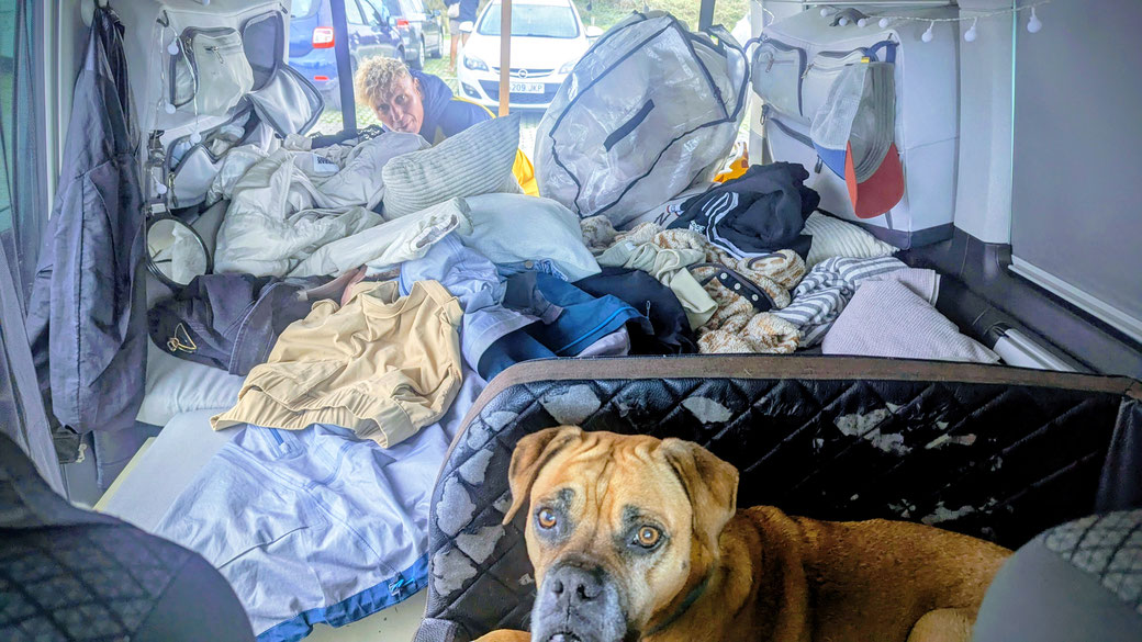 So sitzen wir 1,5h am Auto rum. fahren noch 3 Runden über den Stellplatz. Recherchieren Park4night leer.