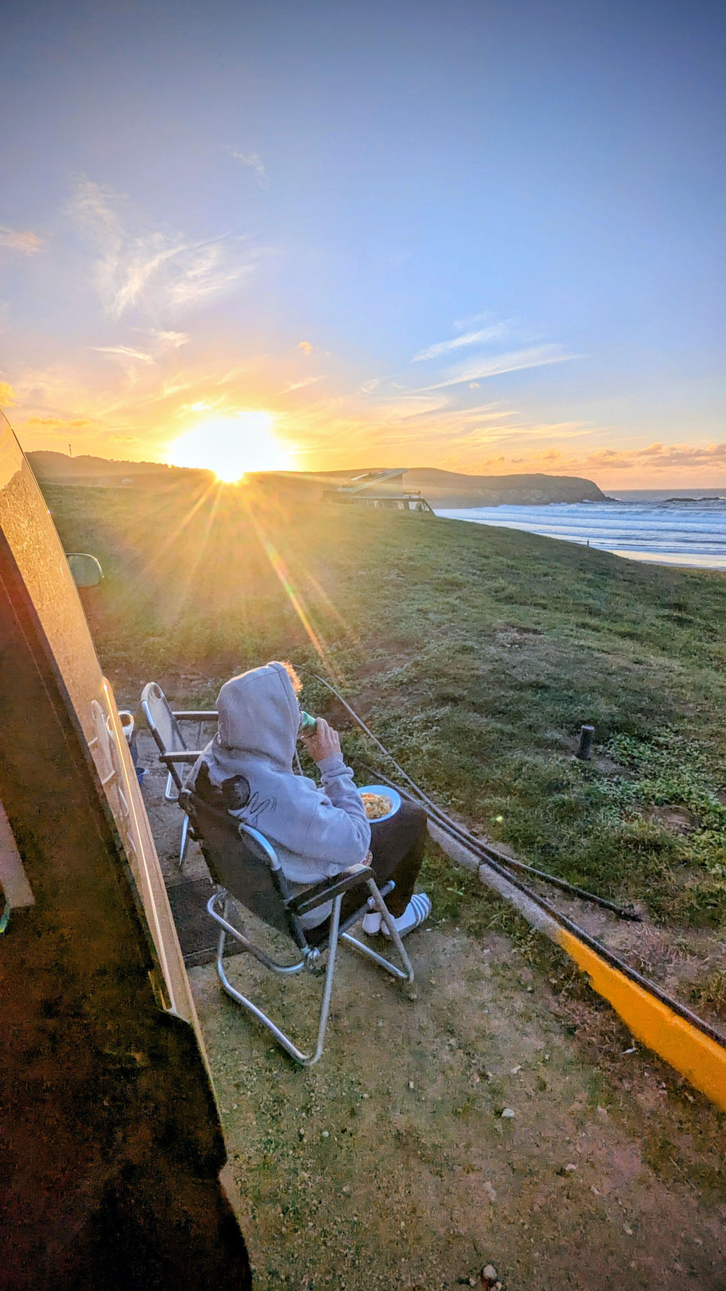 -einen unterhaltsamen Abend in sehr netter Mitcamperrunde (wobei "Camper" das falsche Wort ist. "Weltreisende" passt schon eher. Wir hören und staunen. Sind ein bisschen neidisch. Und sehr fasziniert.)