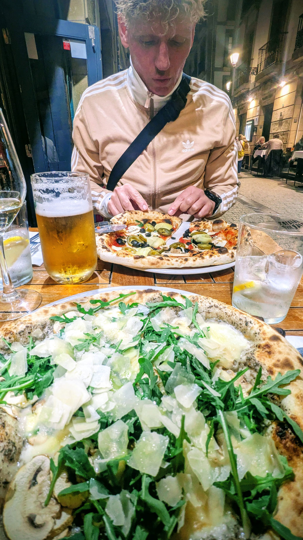 Nach 1,5h (scheint unsere Zeit zu sein) ENTSCHEIDEN wir uns dann.. Für typisch spanische... Pizza. ☺️